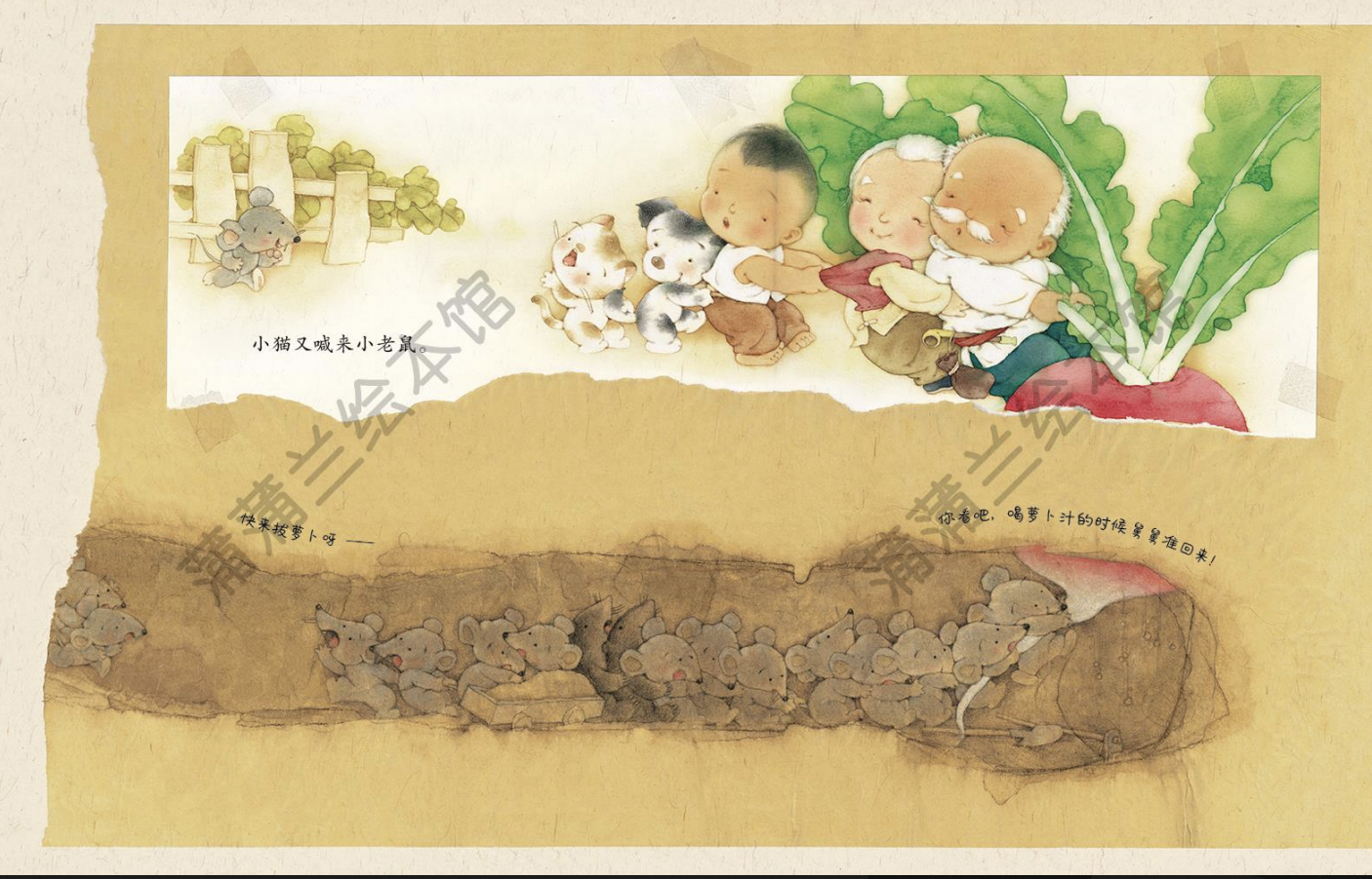 在《拔蘿蔔》中,周旭用童年記憶感染讀者情緒,以經典故事,喚醒閱讀記憶。別出心裁的構思,讓經典故事充滿意外與驚。
