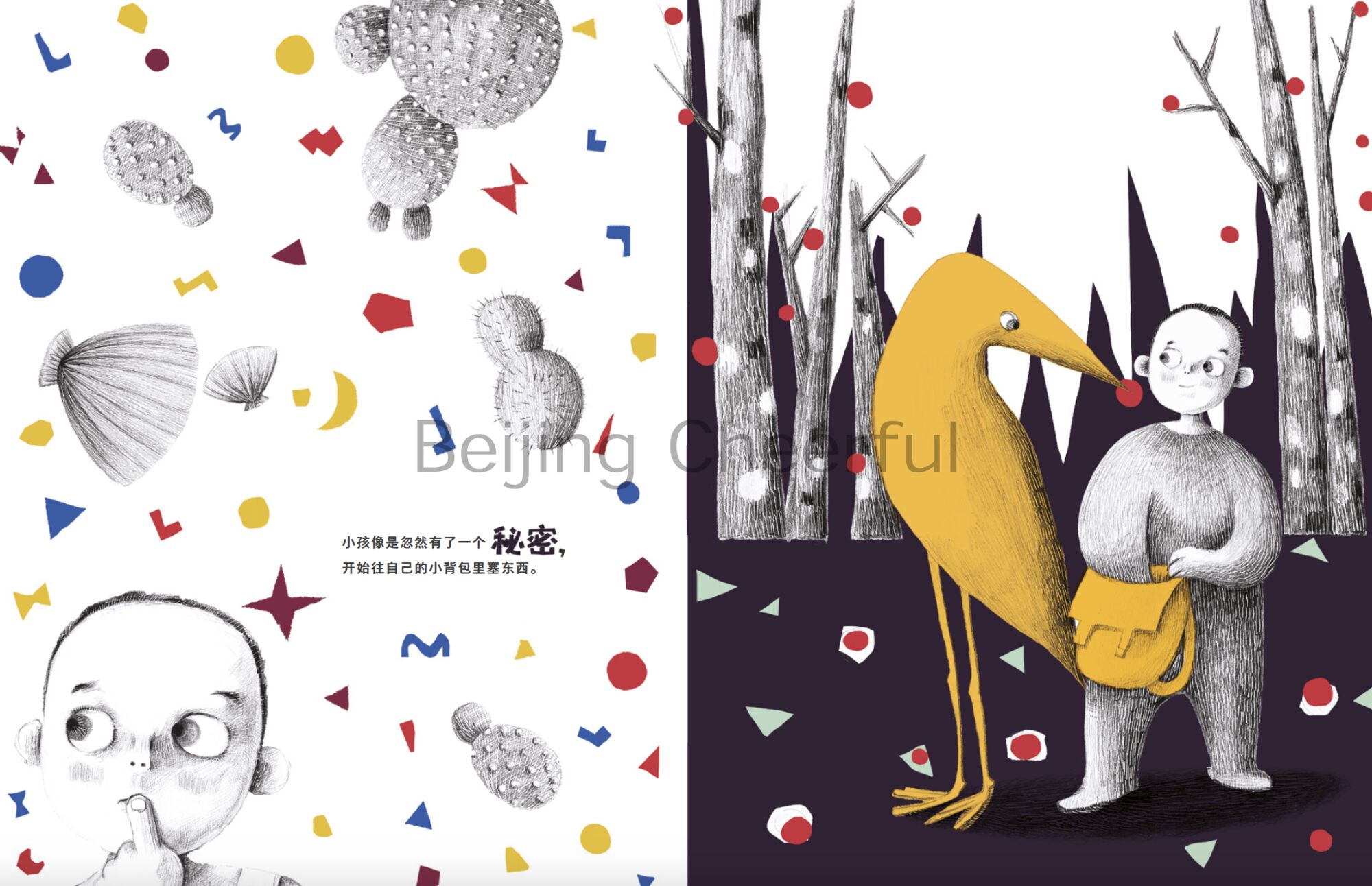 「精妙的水彩畫與拼貼畫完美結合,單色背景與彩色元素和諧交織。基於對角線或幾何韻律的排列,趣味十足。畫面色彩簡約,卻充滿了真情實感。對於觀眾來說,每一幅插畫都是一次視覺冒險。」——資深出版人,迪亞哥出版公司外國版權經理 瑪麗亞·路易莎·博爾薩雷利