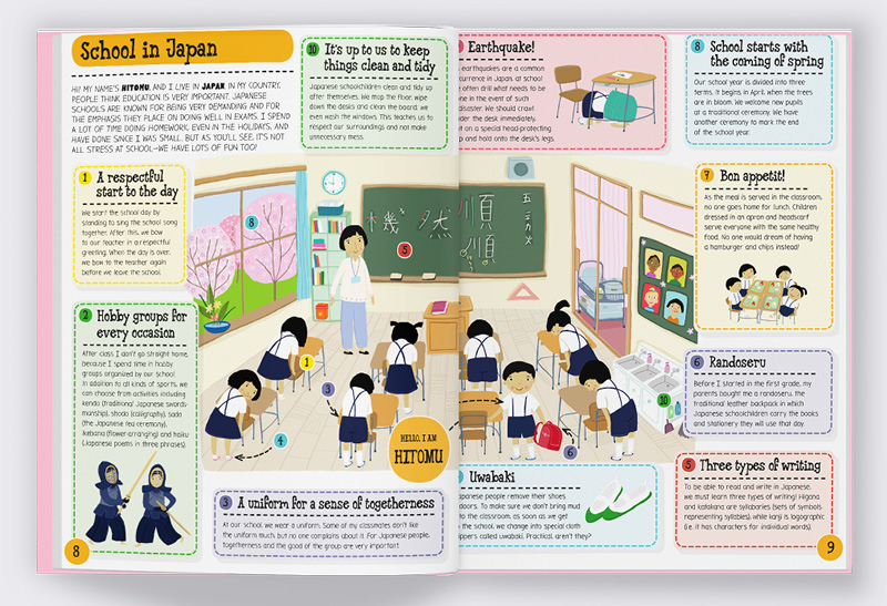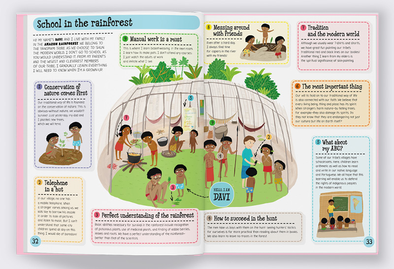这一精美插图系列带领年轻读者走遍世界各地,让孩子们展示他们的家庭、庆祝节日的方式、喜爱的游戏、学校和教育的特点。读者将会了解到各种类型的房屋、日常活动、人们的着装,以及他们新朋友所生活国家的文化。
