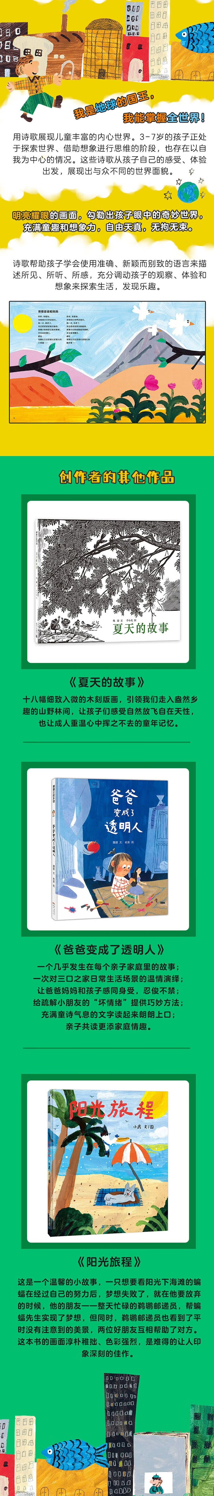 《如果我是地球的國王》通過詩歌的形式,展現了孩子們一天的生活,從清晨起床,到夜晚在爸爸媽媽的陪伴下準備安然入睡。在這其中的整個白天,孩子們沈浸在多彩的生活和無限想象的世界中,他們的腦海裡充滿了奇思妙想,洋溢著童年的天真和詩意。