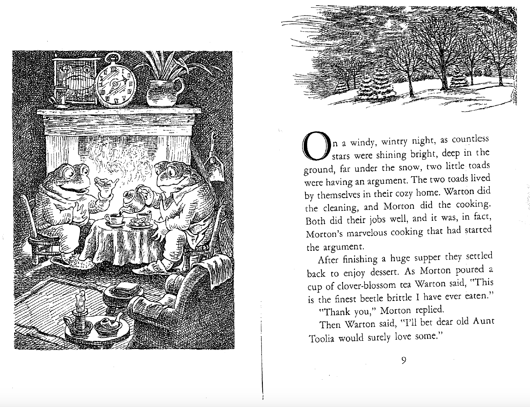在一個寒冷的冬天,蟾蜍兄弟沃頓和莫頓生活在地底的溫馨家園。然而,沃頓卻決定踏上一段危險的旅程,前往拜訪阿姨圖利亞,帶去莫頓製作的美味甲殼蟲脆餅。儘管莫頓試圖阻止,但沃頓執意前行。他巧妙地製作了滑雪板和滑雪杖,踏上了冒險之旅。