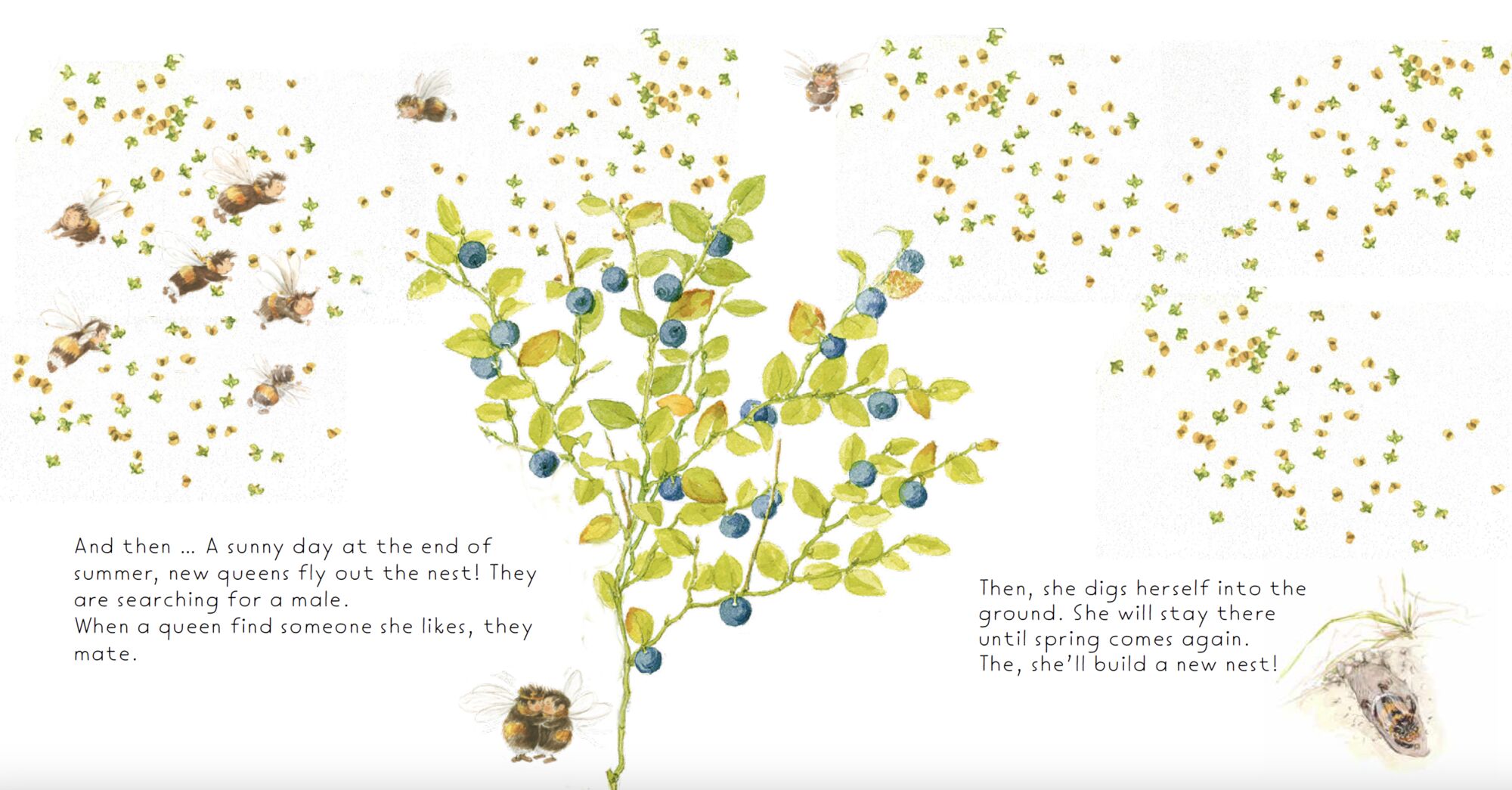 Maj Fagerberg和Stefan Casta再次合作,推出了一本关于蜜蜂的新书,这个小小的生物对所有生命来说都至关重要。通过简短的文字和细腻的插图,讲述了蜜蜂(特指大黄蜂或熊蜂)的生活周期和生活过程。故事以蜜蜂女王为焦点,描述了她在冬天休眠、春天苏醒后寻找夏季巢穴的过程。