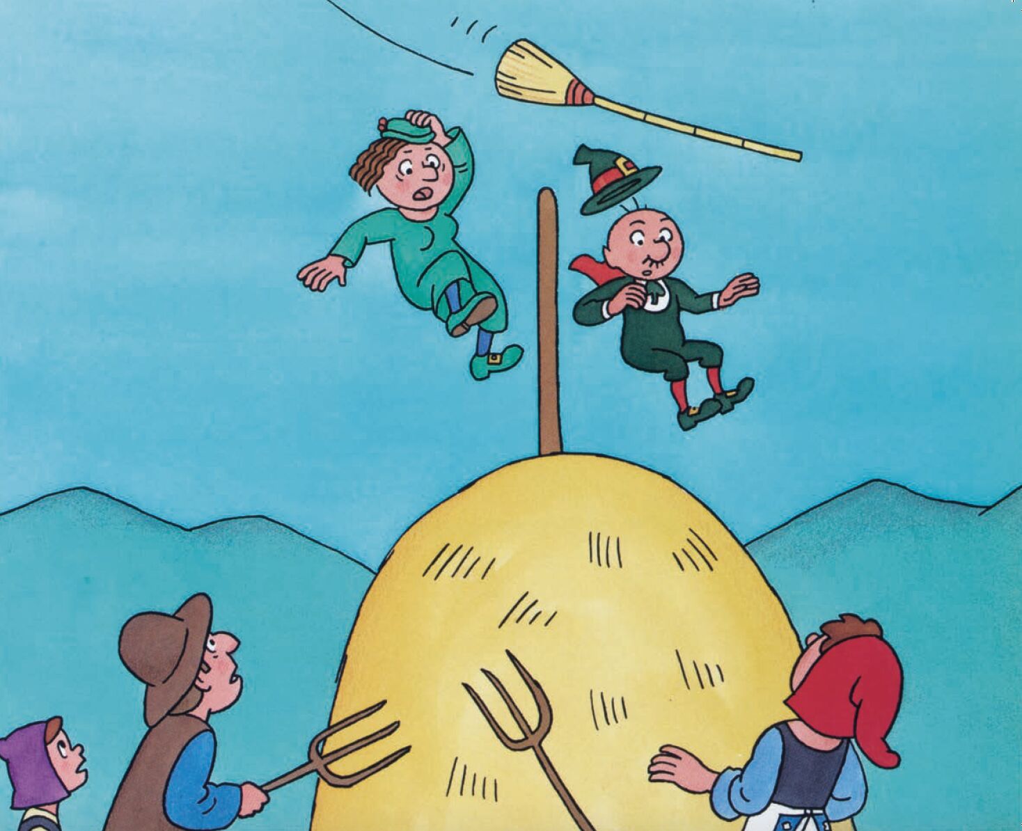 Ot 和伯莎正骑着他们的魔法扫帚,突然间,一只大黄蜂被卷入扫帚中!