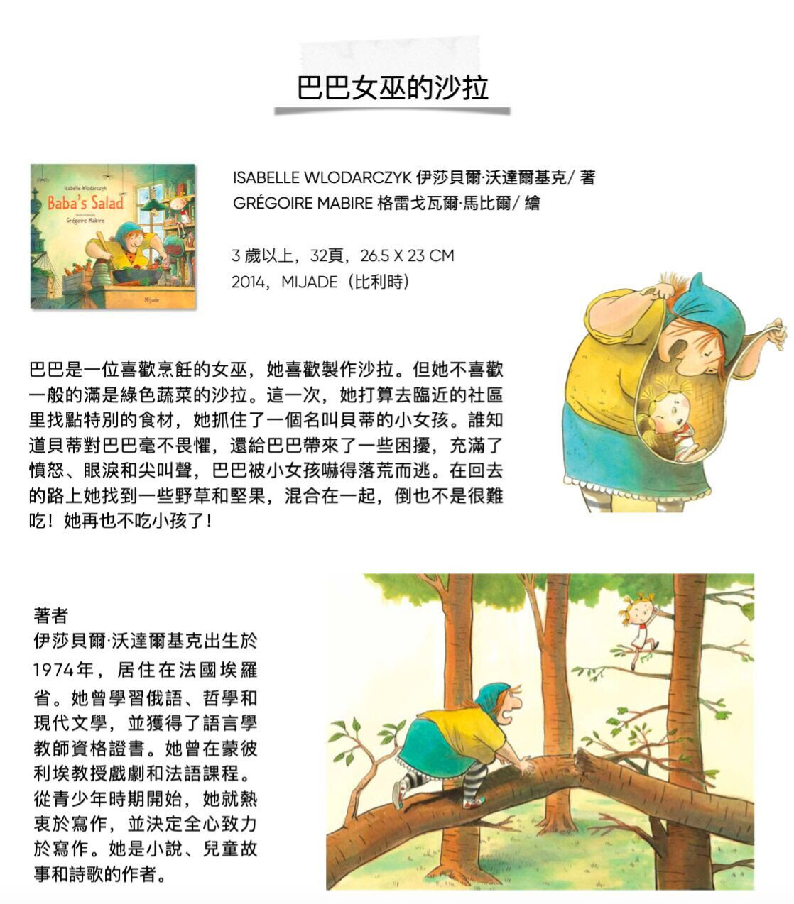 GrégoireMabire 1975年出生在法國的聖洛,目前居住在南特。他在烹飪方面取得了學位,後來轉向繪畫,並在布魯塞爾的聖盧克學院(Institut Saint-Luc)繼續深造。他在Mijade出版社出版了許多圖畫書,其中包括著名的《書里掉下來一隻狼》被翻譯成29種語言。他還為青少年雜誌(Fleurus)和漫畫(Bamboo)工作。