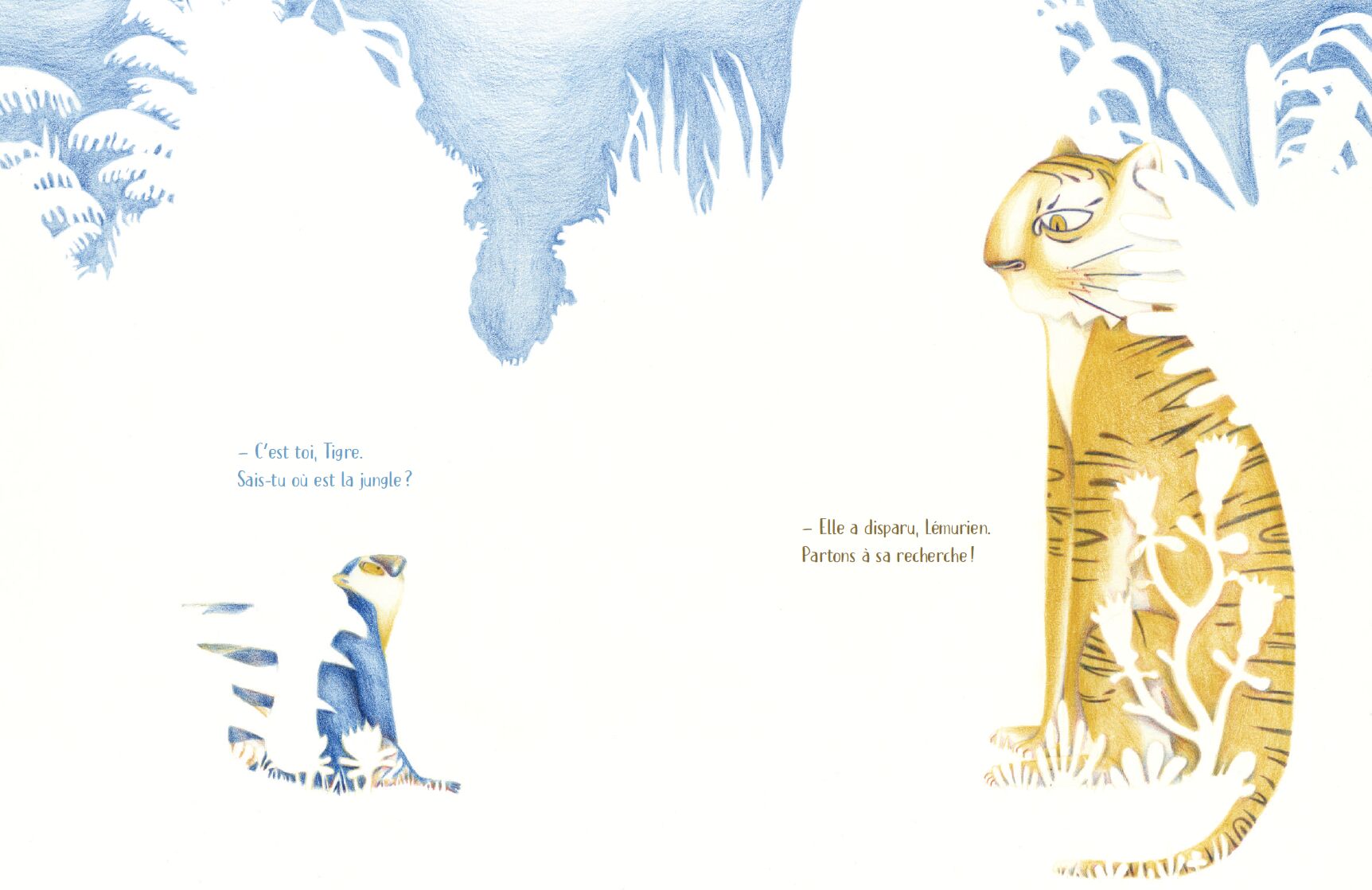 一只狐猴在丛林中荡来荡去,突然,他抓住的藤蔓消失了,他摔到了地上。接着,他遇到了他的朋友老虎,他们发现丛林不见了!这两位朋友决定一起踏上寻找丛林的旅程。在他们的探险过程中,他们错认了一些事物,以为是丛林的一部分,但实际上是其他动物。这引发了一个问题:这些动物能找到他们的栖息地吗? 这本绘本采用了问答结构,使故事充满趣味,同时具有深刻的寓意。精致的铅笔插图以细腻的方式展现了丛林的消失,将读者带入故事之中。通过这个寓言性的故事,作者隐喻地探讨了生态系统的消失问题,通过“寻找游戏”来吸引读者参与其中,同时让他们反思自然环境的重要性,旨在唤起年轻读者对环境保护的意识。