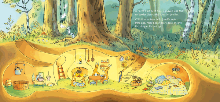 “对于这本图画书,我首先使用数字板在计算机上制作了初稿。随后,我打印出草图,进行重新剪裁和调整空间。一旦找到页面的平衡,最终的绘画是用铅笔在透明纸上完成的,然后进行扫描和在计算机上上色。
