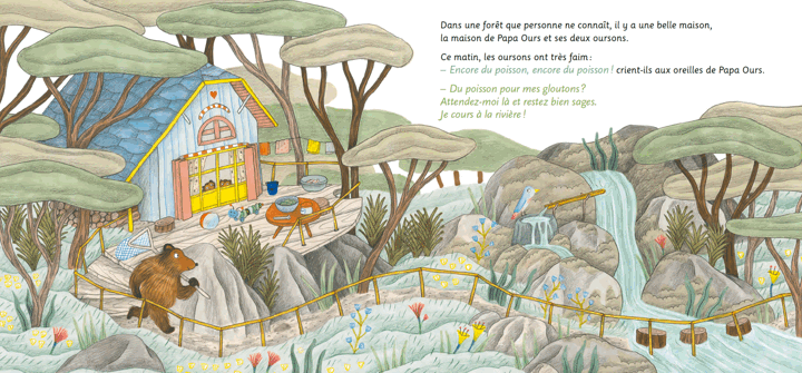 - 再来点鱼,再来点鱼!他们对着熊爸爸的耳朵喊道。