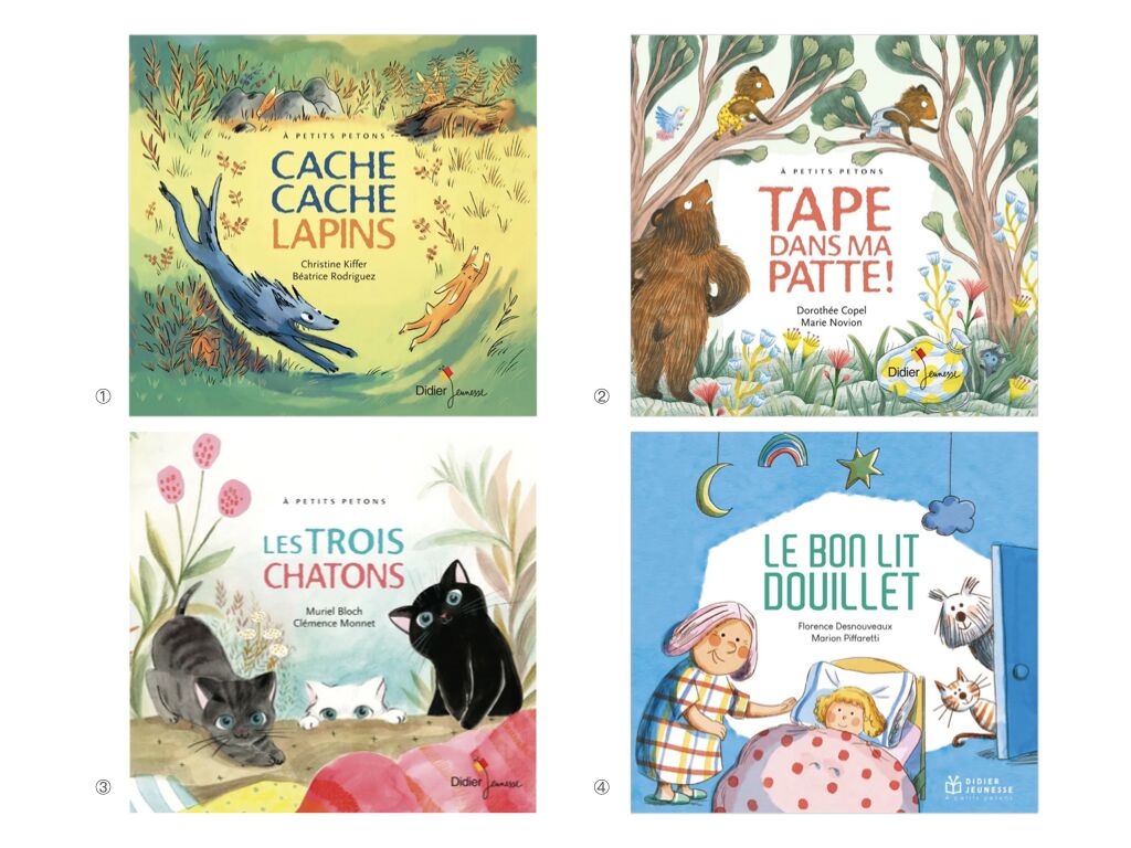 ①《躲猫猫兔子》②《握个爪吧!》③《三只小猫咪》④《温馨的小床》
