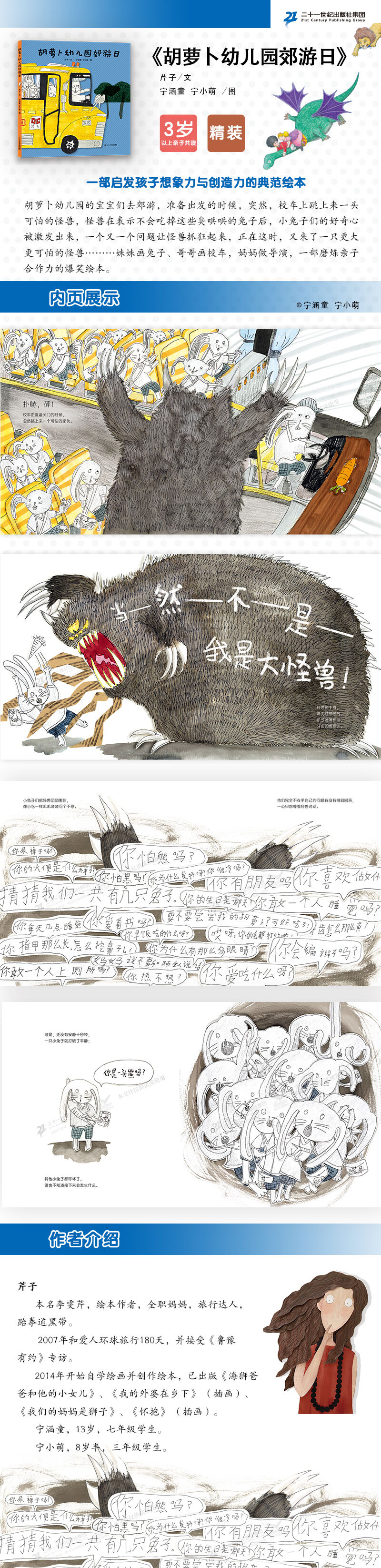 《胡萝卜幼儿园郊游日》这本书的图画作者是文字作者芹子的两个孩子