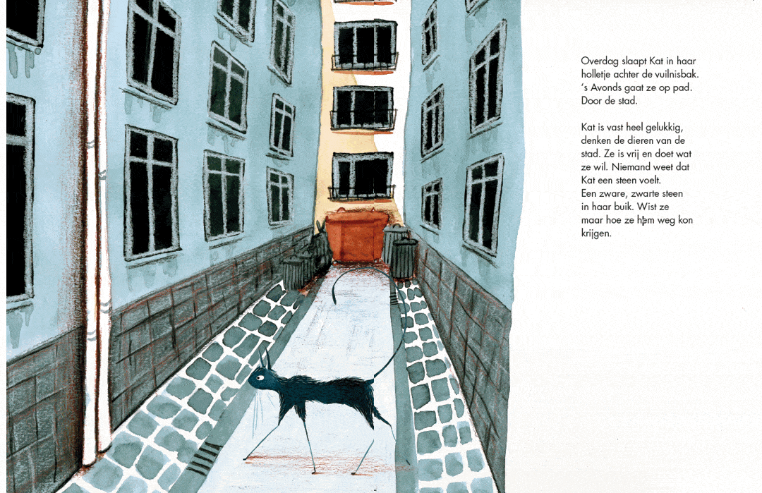 插画家Jamina Van Maele从小就对绘画产生了浓厚兴趣,一开始是作为欣赏者,但很快也成为了创作者。这些激情经常帮助她度过困难、孤独的时期。通过这本书,她给予孩子们安慰,并让他们和成年人感到并不孤单。《Kat in de stad》是Jamina在Sint Lucas Antwerpen学习插画设计期间的毕业项目。