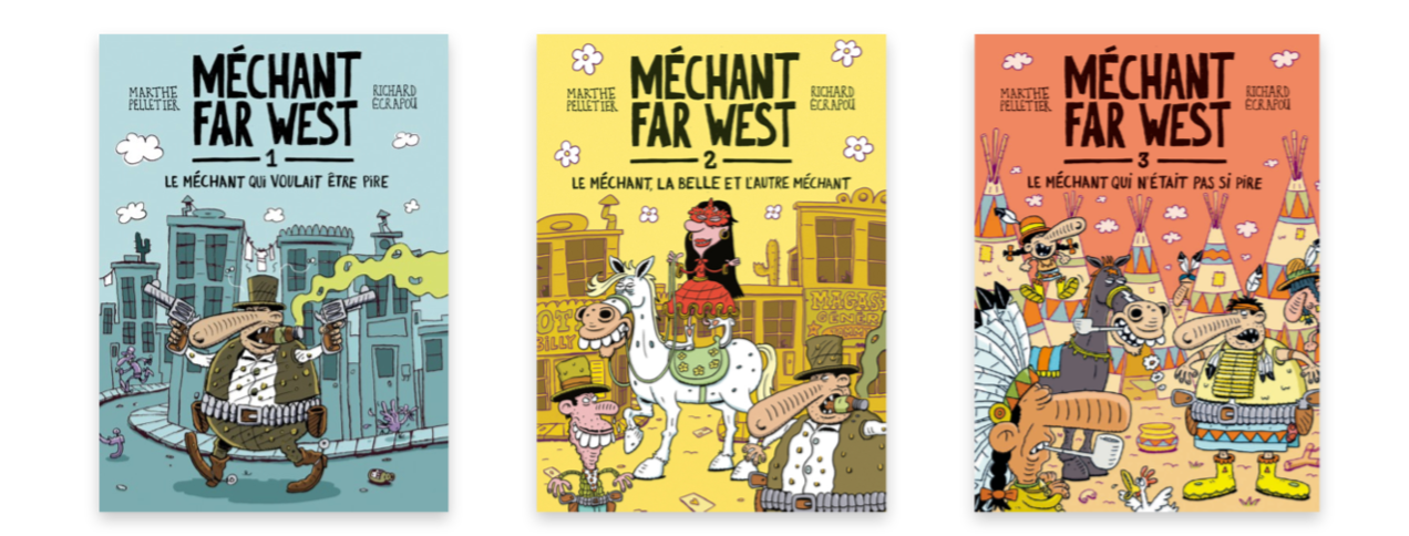 Marthe Pelletier再次为我们呈现了一个充满曲折的滑稽故事。插图带有Richard Écrapou生动而不可抗拒的幽默气息,完美地体现了这个疯狂西部的所有细微差别。这对组合使得《坏人、美女和另一个坏人》成为一部老少皆宜的小说!