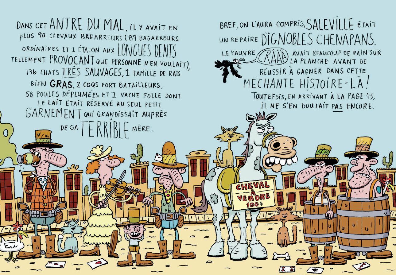 嗯,我们不得不思考,因为… 翻开第三页,Craaaw就会被水牛踩到;他的调皮马出卖了他,在一个勇敢的苏族村庄里陷入困境,村民们一点也不畏惧他;他被打昏、被嘲笑,失去了游戏、雪茄,最重要的是失去了心爱的洛丽塔…… 对我们的反派来说,想要以出色的方式结束这个系列绝对是一场艰难的挑战。