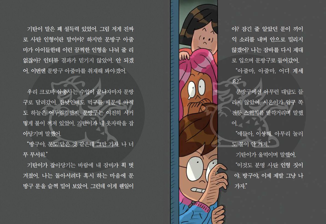 在去学校的路上,记者金方故听说一个文具店正在免费赠送一只“玩偶”,他迫切地想要揭开这个新闻。于是,他展开了搜寻线索、收集证据、走访案发现场和进行深入采访的调查。然而,随着调查的展开,一连串不幸事件发生,最终导致一个令人担忧的事故:他的笔记本不翼而飞。金方故充满恐惧和惊慌,考虑放弃这则报道。他能否揭开那个不祥玩偶背后的真相呢?整个故事一直保持着悬念,迅速吸引读者。而随着翻页,所呈现的独特动画效果为阅读体验增添了额外的乐趣。
